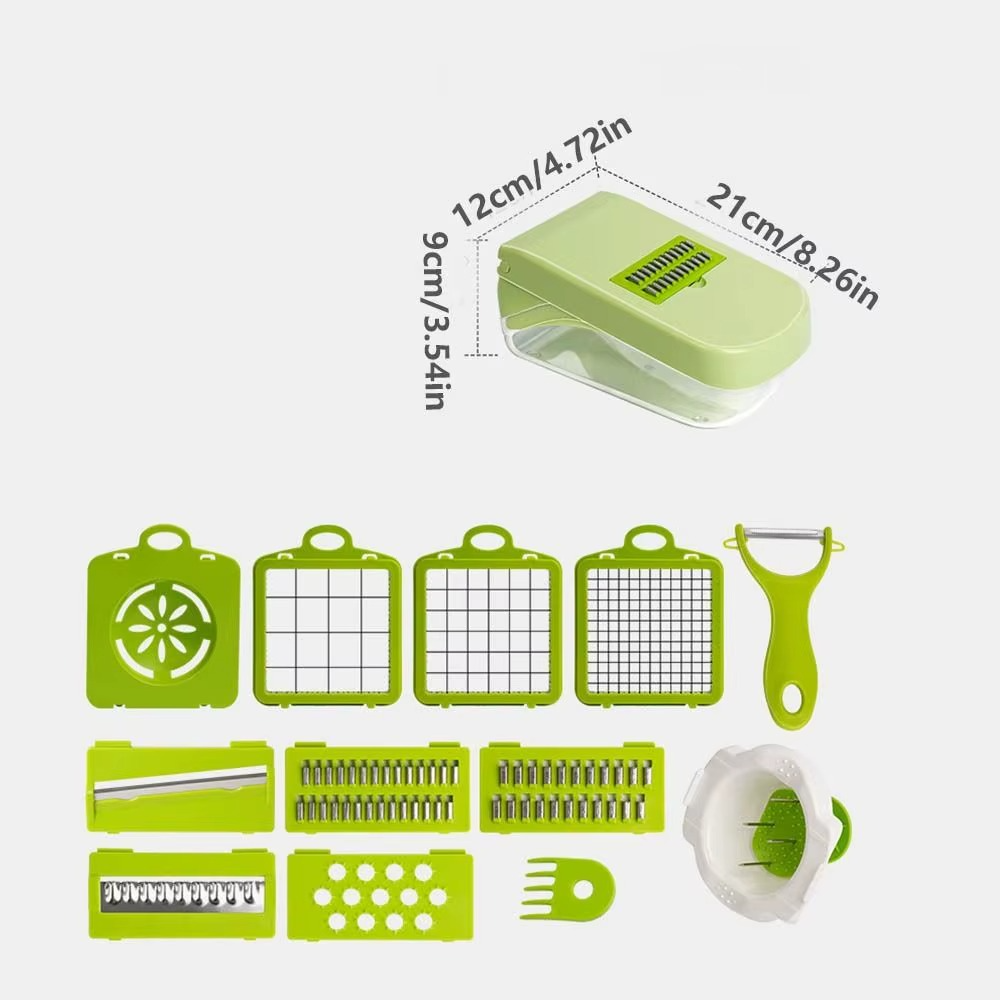 🧅【7 INTERCHANGEABLE BLADES】Cut your produce like a pro with our newest vegetable chopper. It offers multiple ways to slice, shred, grate, and mince. The built-in chop lid lets you cut foods directly into the collection tray. This 18-piece set is sure to become a favorite in your kitchen tools.