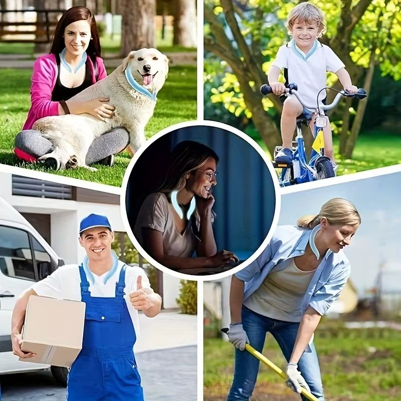 The arc design fits necks 13–18″. Its gentle elasticity stays secure during cycling, gardening, or office work.