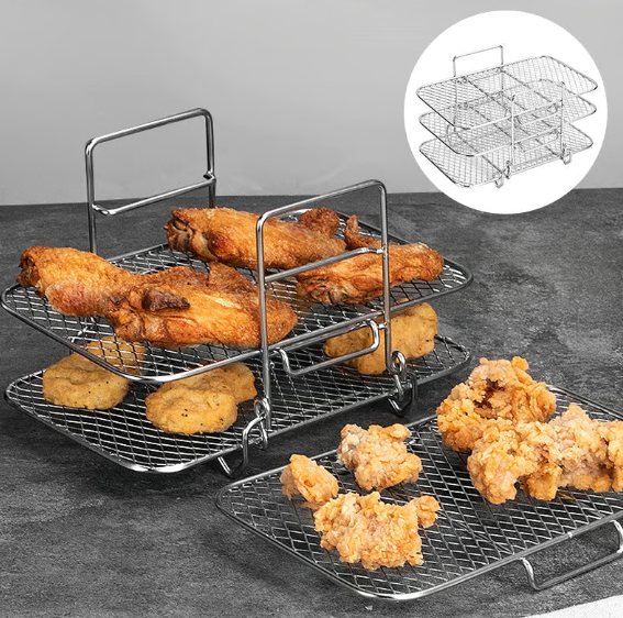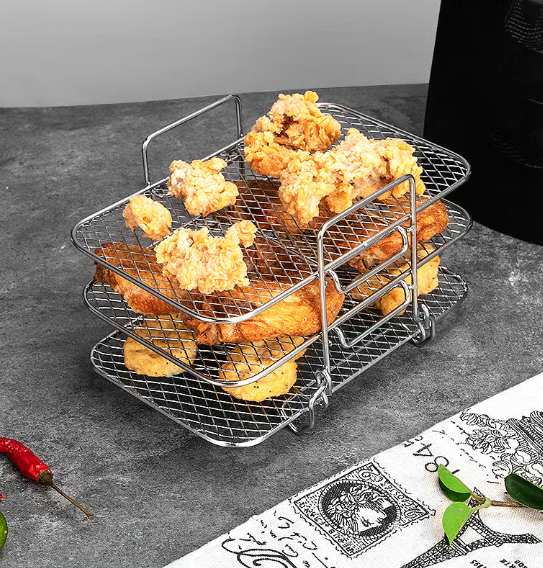 【Detachable three-layer design】The air fryer detachable accessories can be used for 2 air fryers at the same time. You can grill steaks on the air fryer cooking rack while preparing the corresponding side dishes in another air fryer basket for a quick candlelit dinner with your friends.