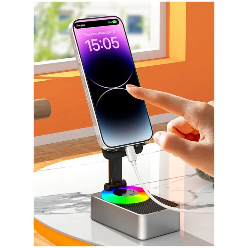 Mobile phone holder, mobile phone charging, power bank, colorful lights, Bluetooth, 360° rotation, compatible with Apple devices