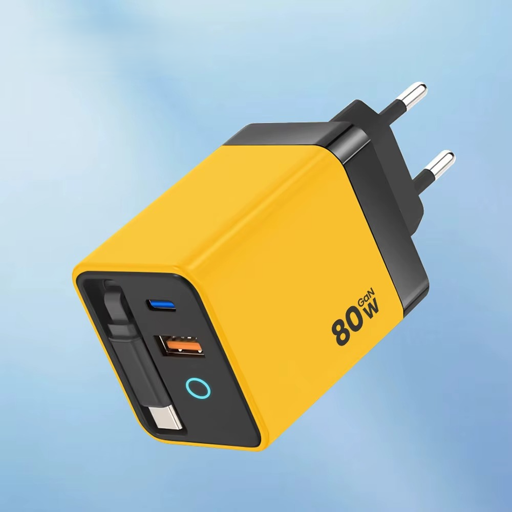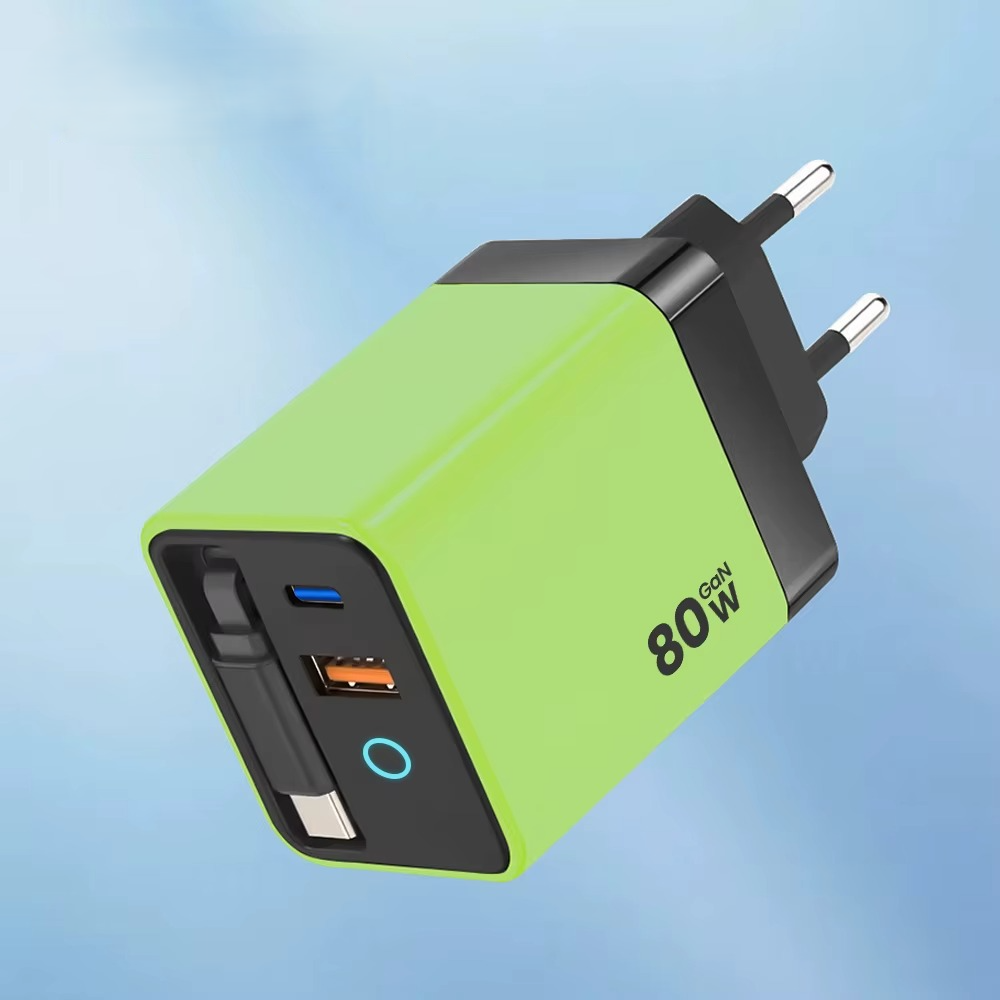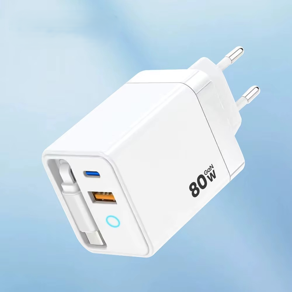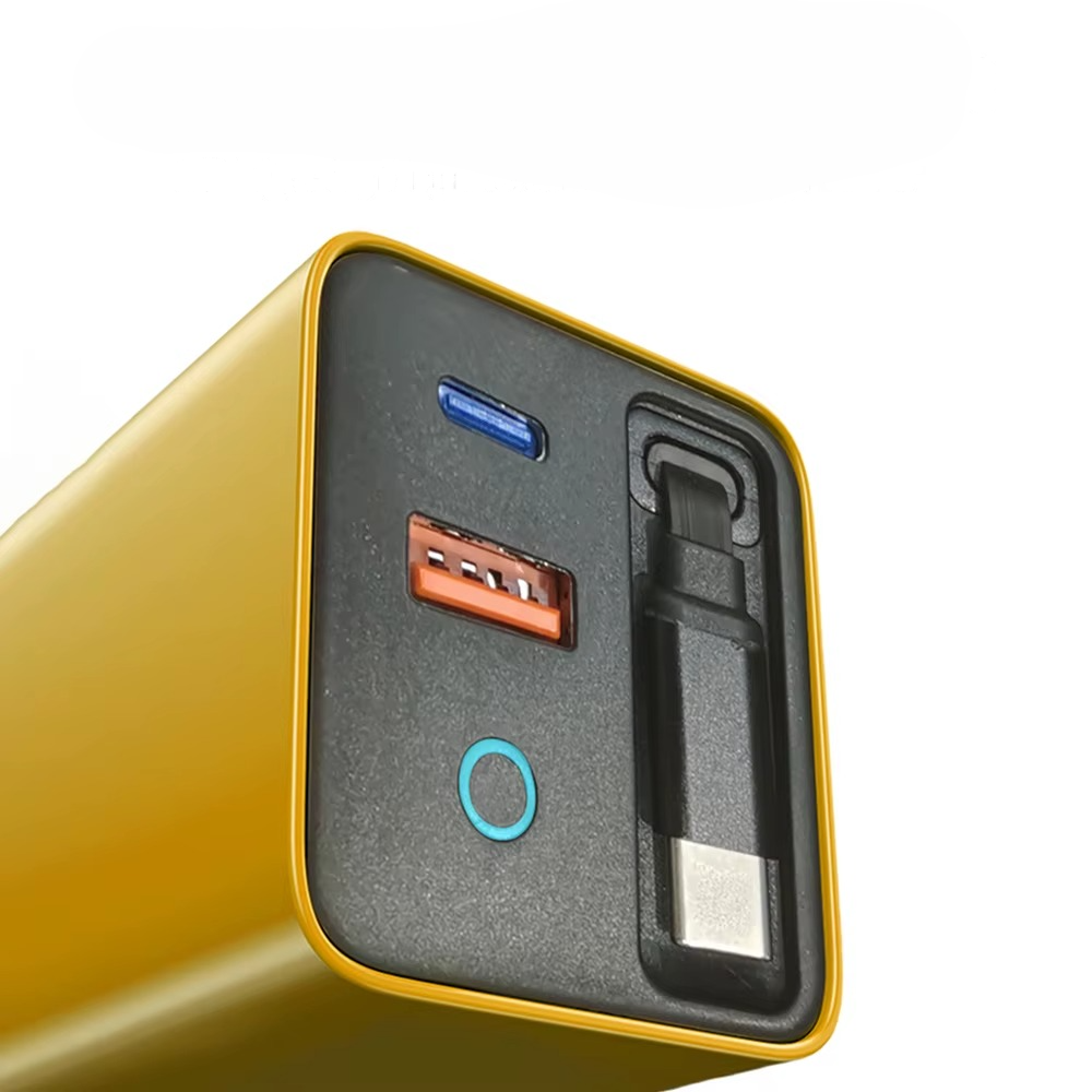 With a built-in 80 cm retractable USB-C cable and two additional USB ports, you can power up three devices at once. No more messy cables or overloaded outlets — just fast, efficient charging whenever you need it.